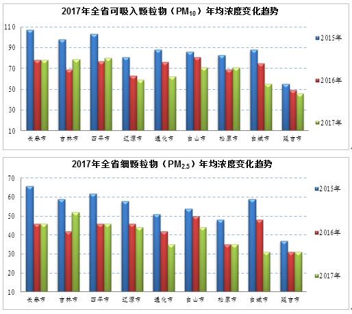 深入贯彻落实《大气污染防治行动计划》和《吉林省清洁空气行动计划》,突出抓好“冬病夏治”和“秋冬季百日攻坚”,使全省可吸入颗粒物(PM10)年均浓度较2013年同期下降了14.1%,细颗粒物(PM2.5)年均浓度较2015年下降27%,超额完成了《大气污染防治行动计划》确定的空气质量改善目标。不断强化煤烟型污染治理,全省累计淘汰燃煤小锅炉6329台,淘汰比例为97.6%。深入推进燃煤机组超低排放改造,全省43台20万千瓦以上机组改造完成32台,占全省总装机容量的比例达到60%以上。积极推进黄标车淘汰,全省累计淘汰黄标车32.7万辆,淘汰比例达到91%,达到了国家的考核要求。深入开展秸秆禁烧和综合利用,在春秋两季组织开展秸秆禁烧专项行动,建立了全覆盖的网格化监管体系。积极参与推进秸秆“五化”和“收、储、运”体系建设,全省秸秆综合利用率达到77%以上。积极有效应对重污染天气,修订了省级重污染天气应急预案,组织各地修订了本地应急预案,形成了全省统一的应急预案体系。