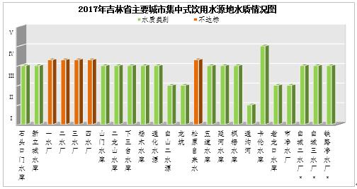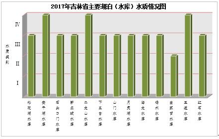 2017年度,全省13个湖泊、水库中,曲家营水库水质为Ⅱ类,水质状况为优;松花湖水库、新立城水库、石头口门水库、月亮湖水库、红石水库、山门水库、下三台水库、海龙水库和杨木水库等9个水库为Ⅲ类水体,水质状况为良好;查干湖水库、五道水库、二龙山水库为Ⅳ类水体,水质状况为轻度污染。