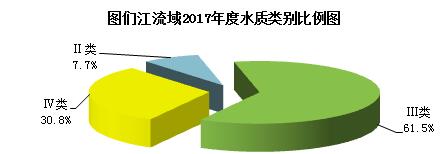 图们江干流5个监测断面中,Ⅲ类水质监测断面3个,占60.0%;Ⅳ类水质监测断面2个,占40.0%。所有断面均达到本年度水质控制目标的要求。