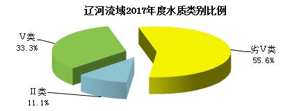 辽河干流7个监测断面中,辽河源断面为Ⅱ类水质,水质状况优,达到水质控制目标要求。拦河闸、周家河口和四双大桥断面为Ⅴ类水质,属于中度污染,未达到水质控制目标要求。西辽河大桥、河清和城子上断面为劣Ⅴ类水质,属于重度污染。