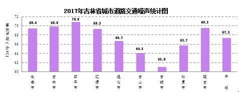 全省9个地级以上城市按《声环境质量标准》(GB 3096-2008)进行监测评价,区域环境噪声昼间等效声级平均值为52.6dB(A),同比降低1.7 dB(A)、下降了3.1%。其中,白山市昼间区域声环境质量为一级水平,占监测城市11.1%;长春市、吉林市、四平市、辽源市、通化市、松原市、白城市等7个城市昼间区域声环境质量为二级水平,占77.8%;延吉市城市区域声环境质量为三级水平,占11.1%。