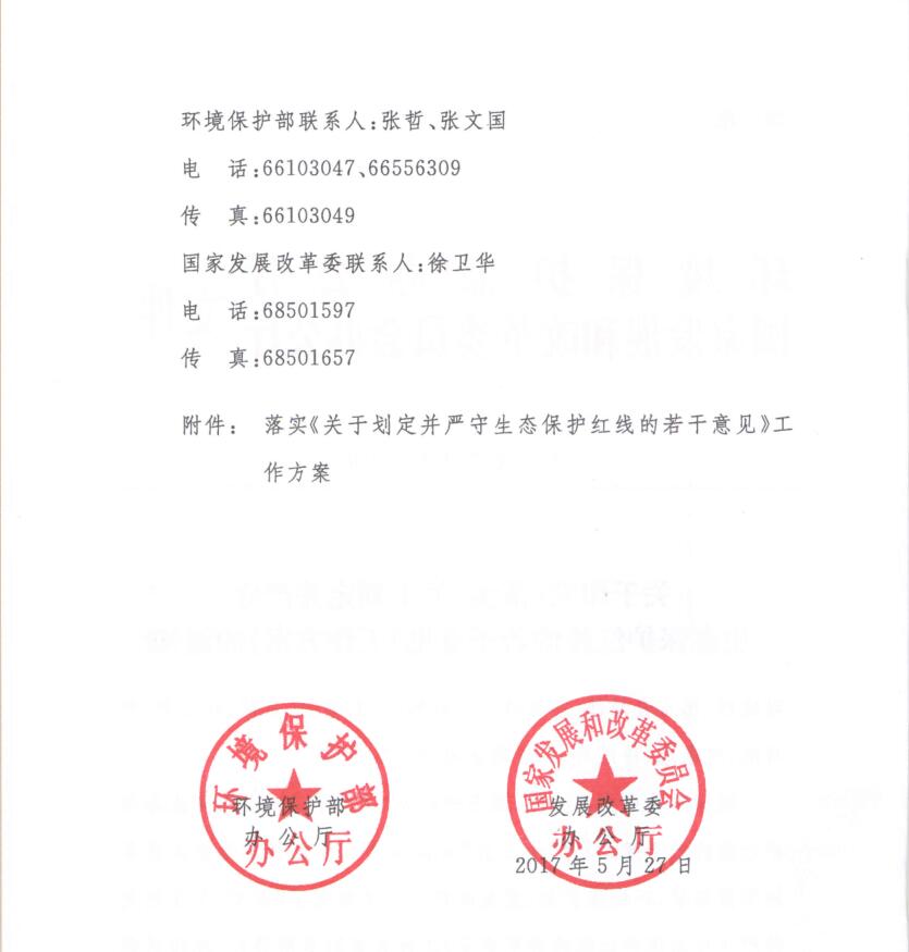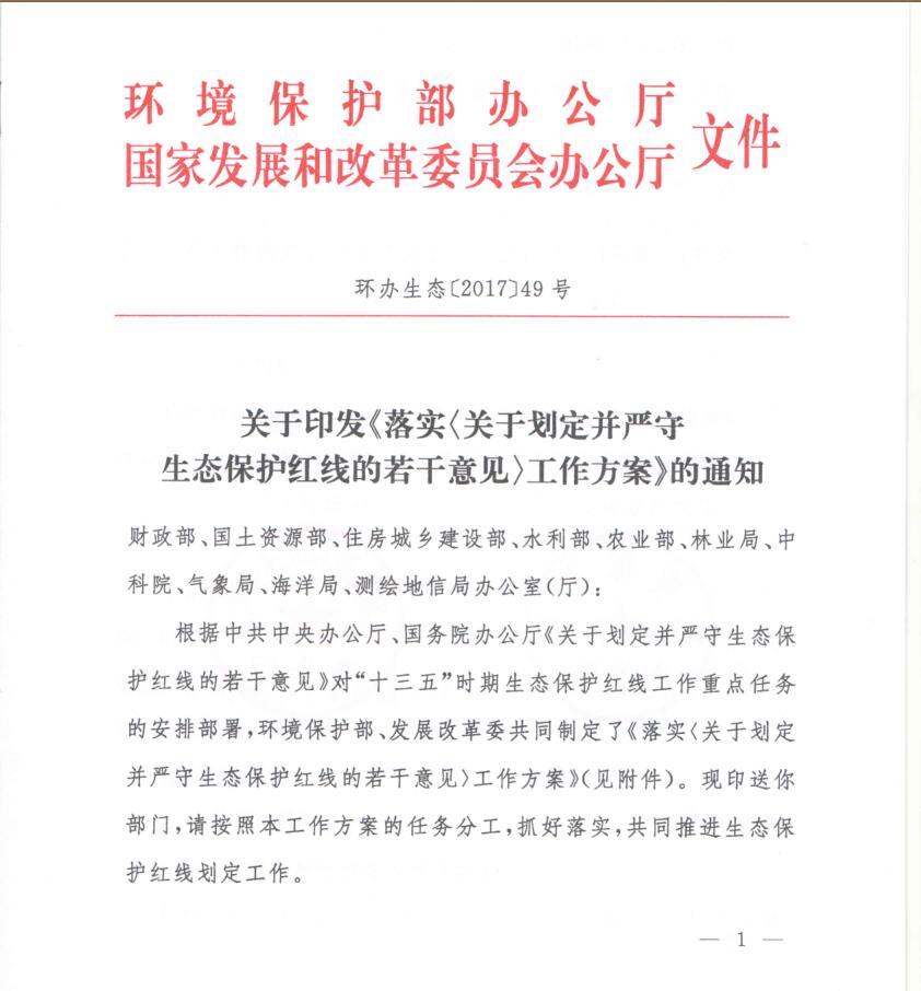 环保部国家发改委落实《关于划定并严守生态保护红线的若干意见》的工作方案-环办生态〔2017〕49号
