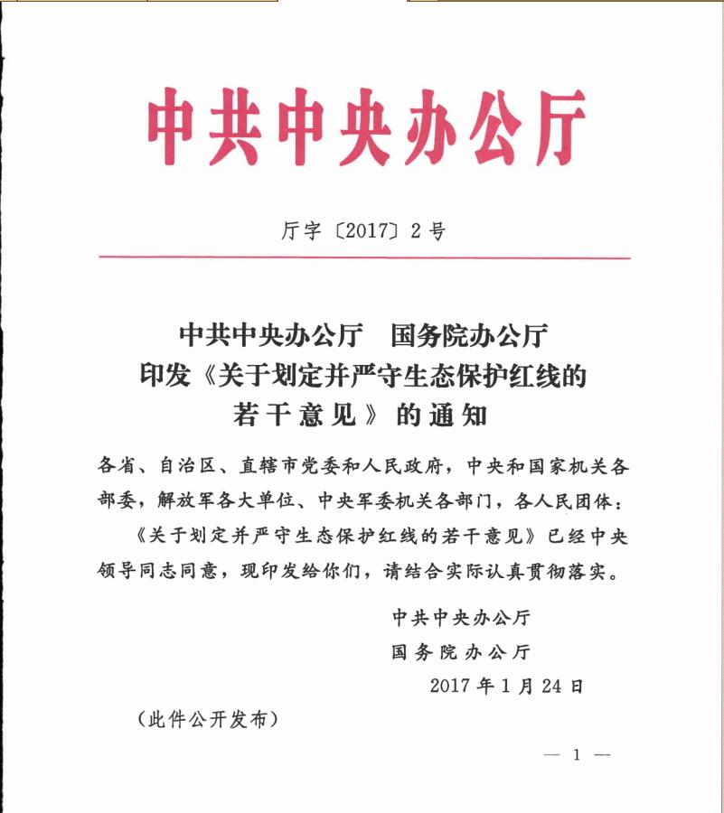 中共中央办公厅 国务院办公厅印发关于划定并严守生态保护红线的若干意见2