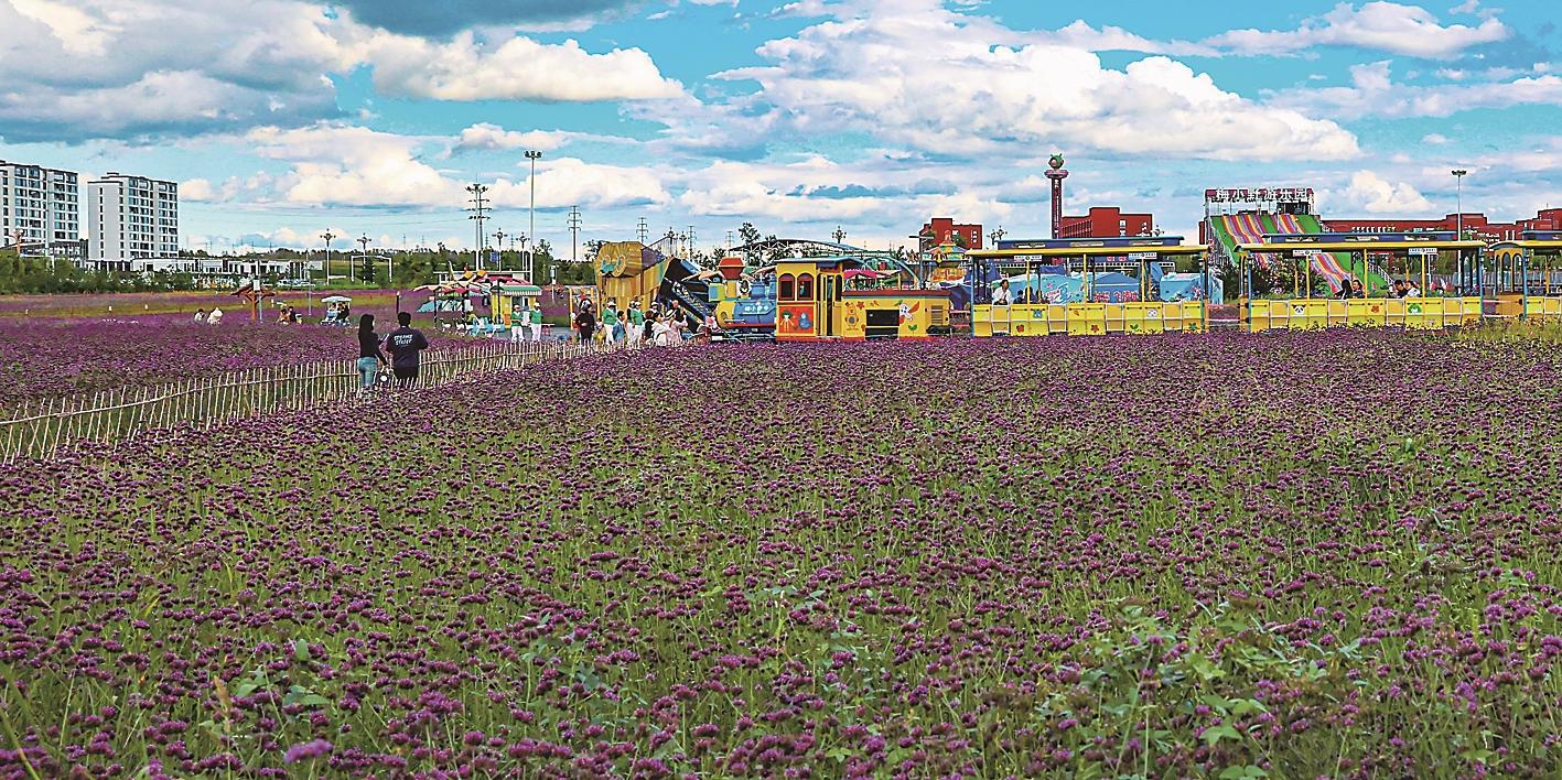 夏天的长春北湖湿地公园,花海中百花齐放,宛如自然调色盘,吸引了众多游客驻足观赏,成为美丽吉林建设中的一道亮丽风景线。