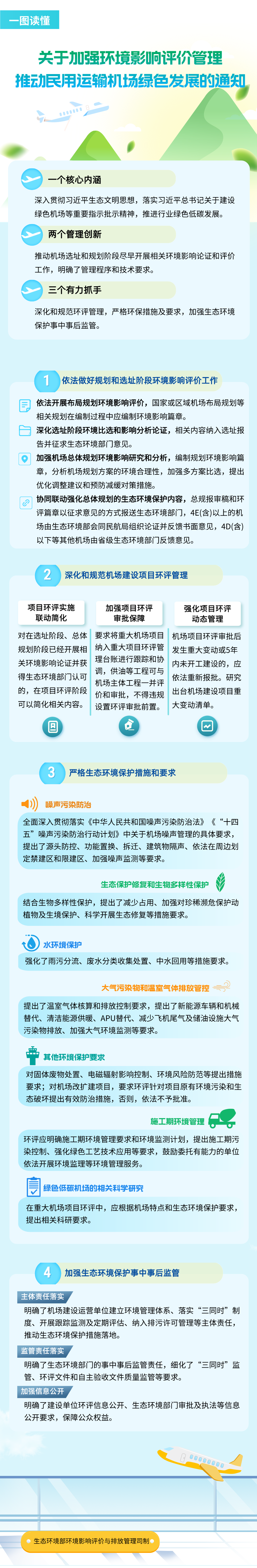 标 题:一图读懂《关于加强环境影响评价管理推动民用运输机场绿色发展的通知》