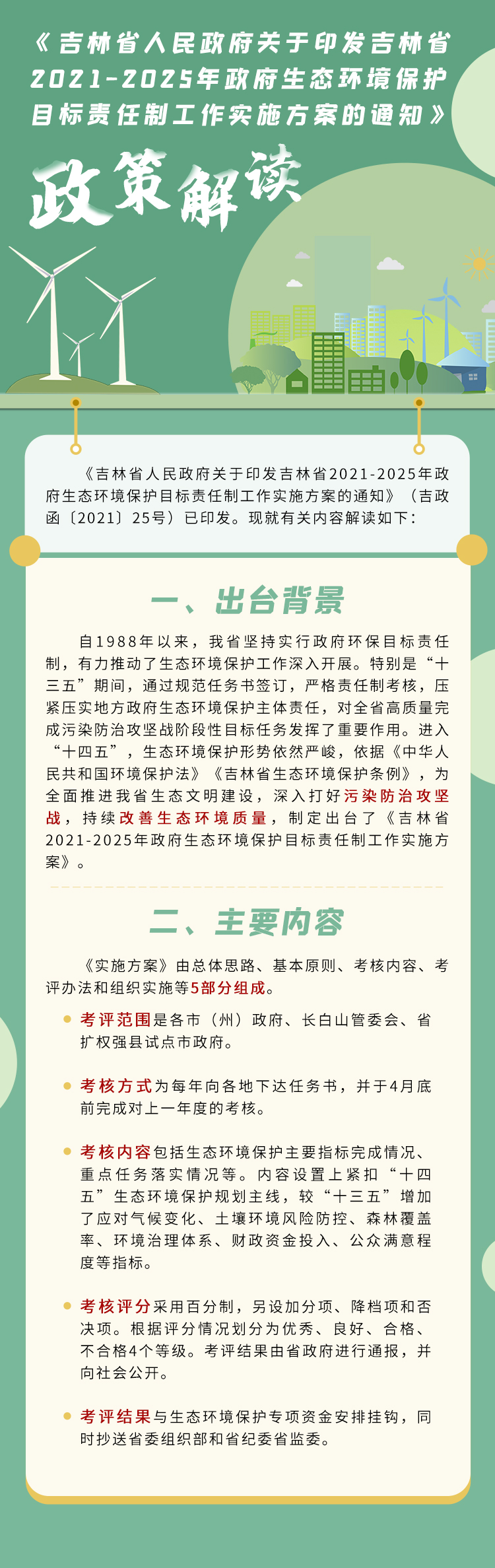标 题:一图读懂《吉林省人民政府关于印发吉林省2021-2025年政府生态环境保护目标责任制工作实施方案的通知》