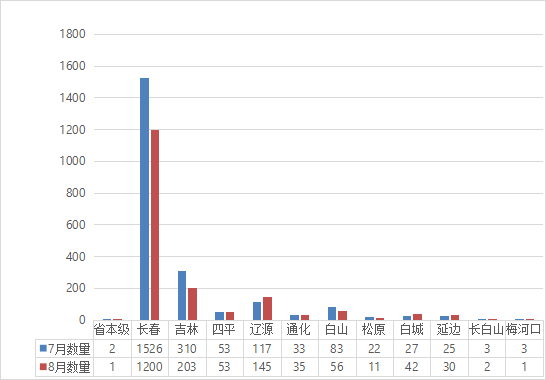 2024年7月、8月吉林彩金网 问题污染类型数量对比图