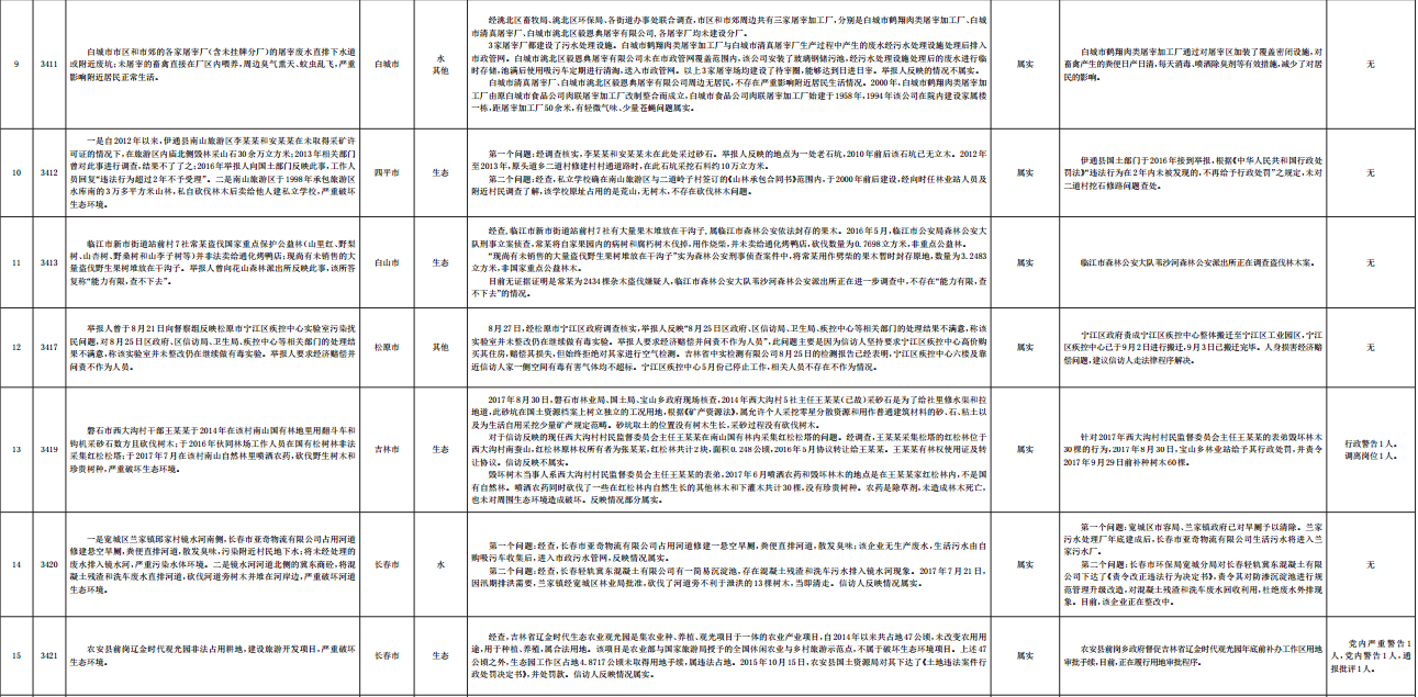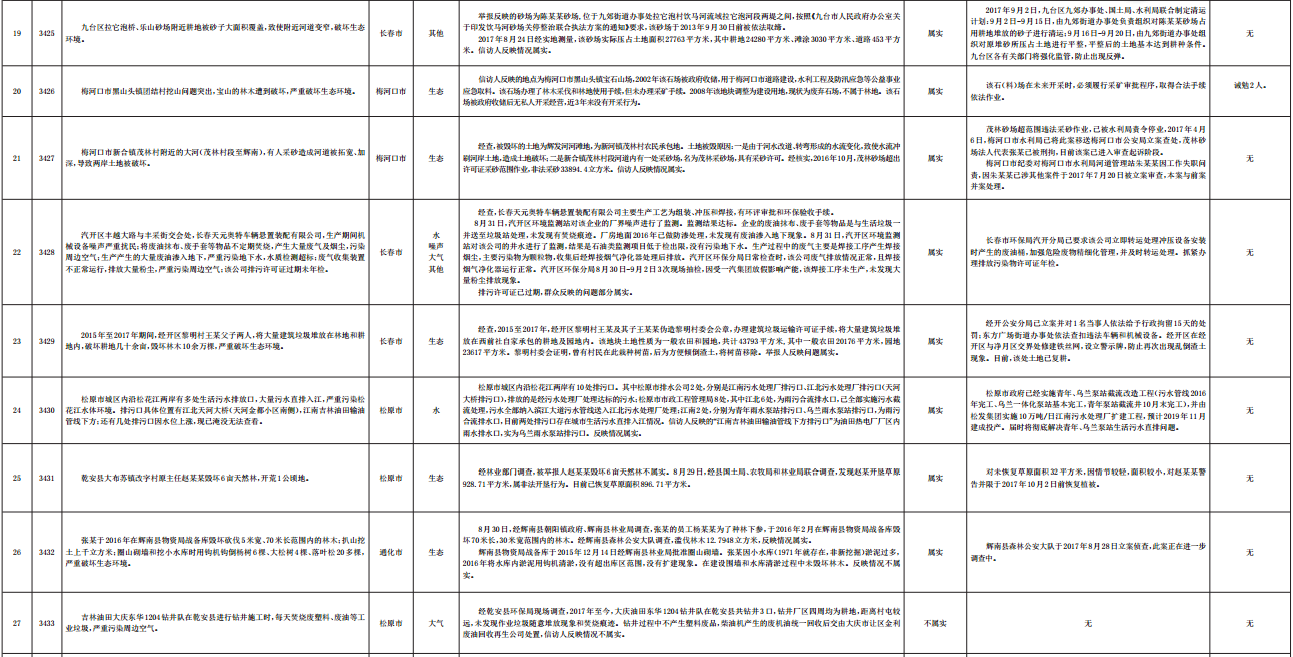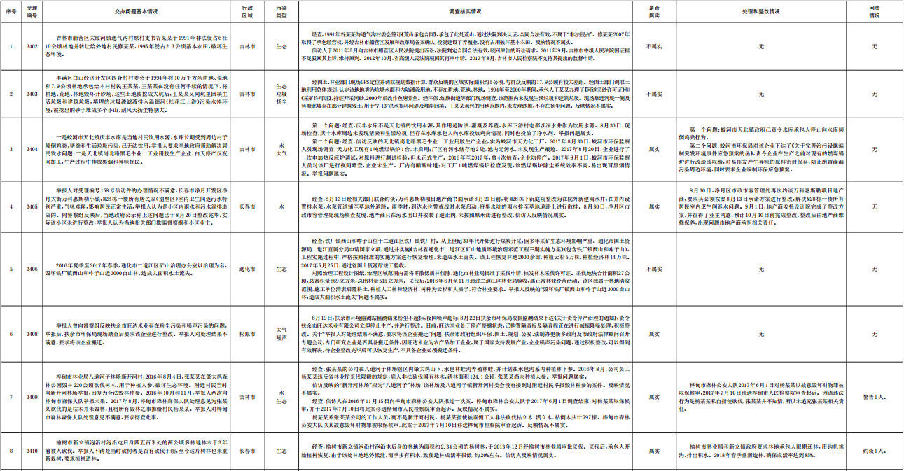 吉林省群众信访举报转办和边督边改公开情况一览表