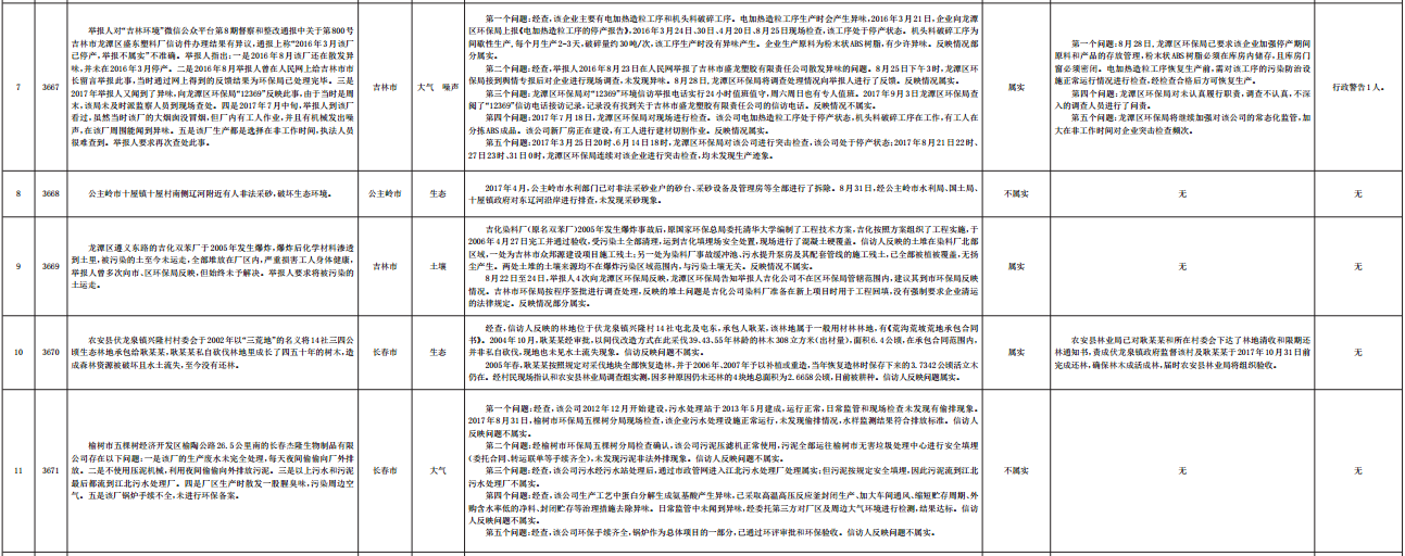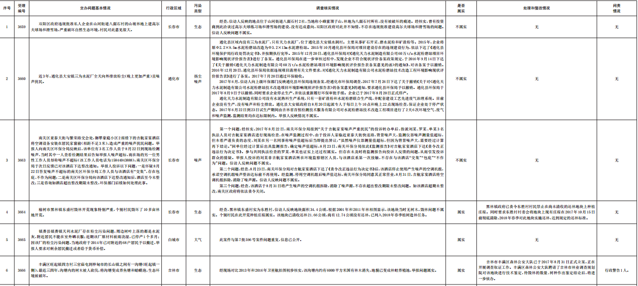 吉林省群众信访举报转办和边督边改公开情况一览表