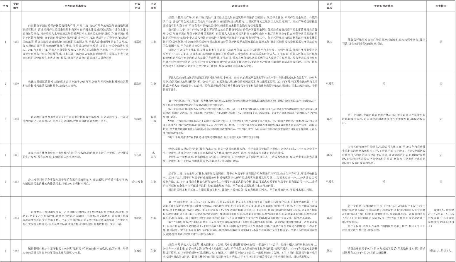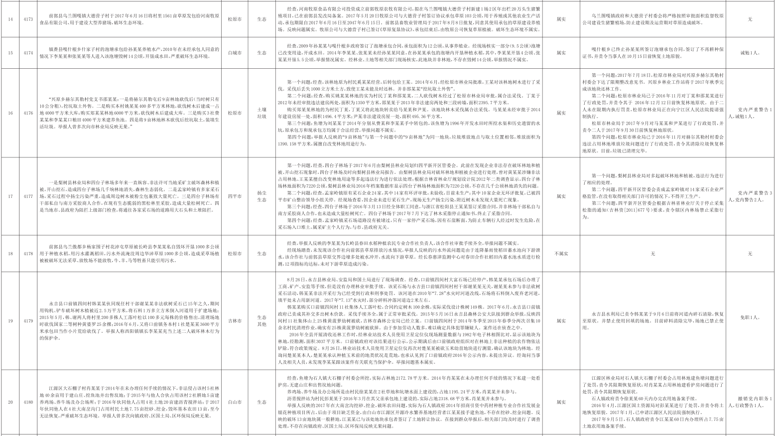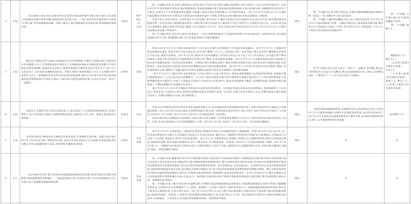 吉林省群众信访举报转办和边督边改公开情况一览表