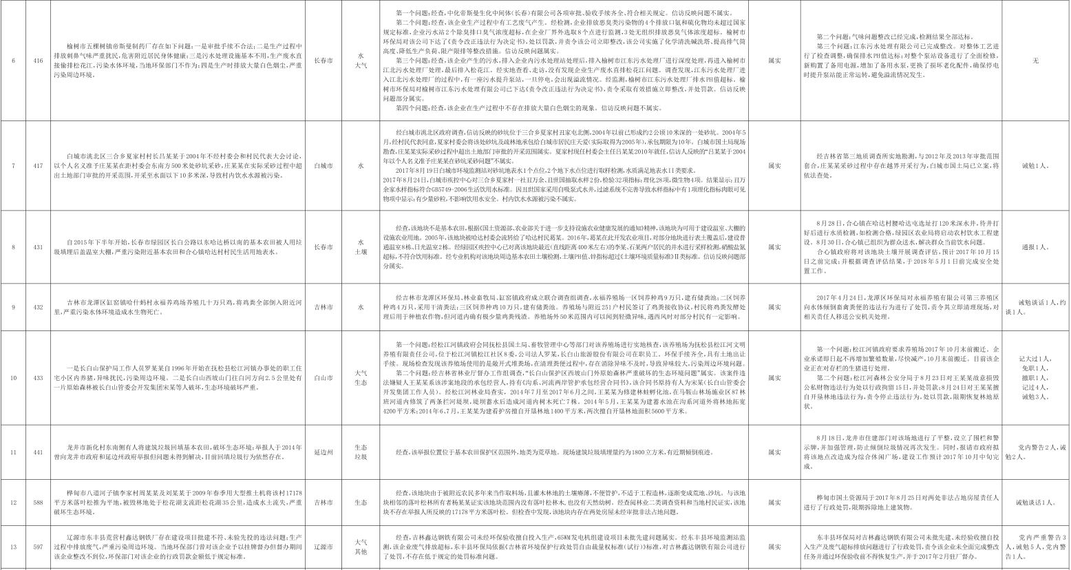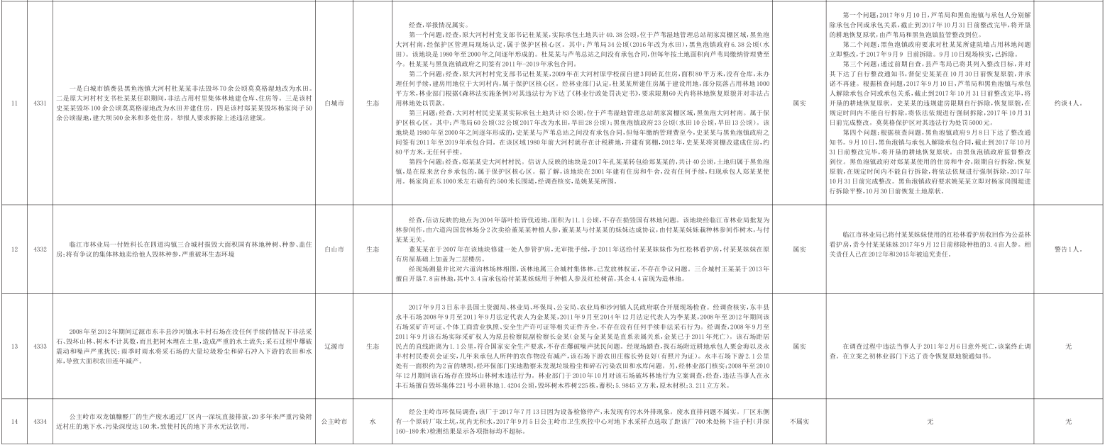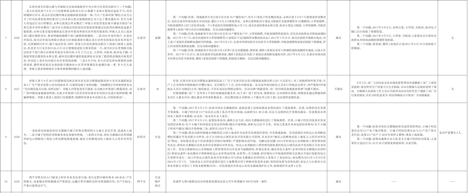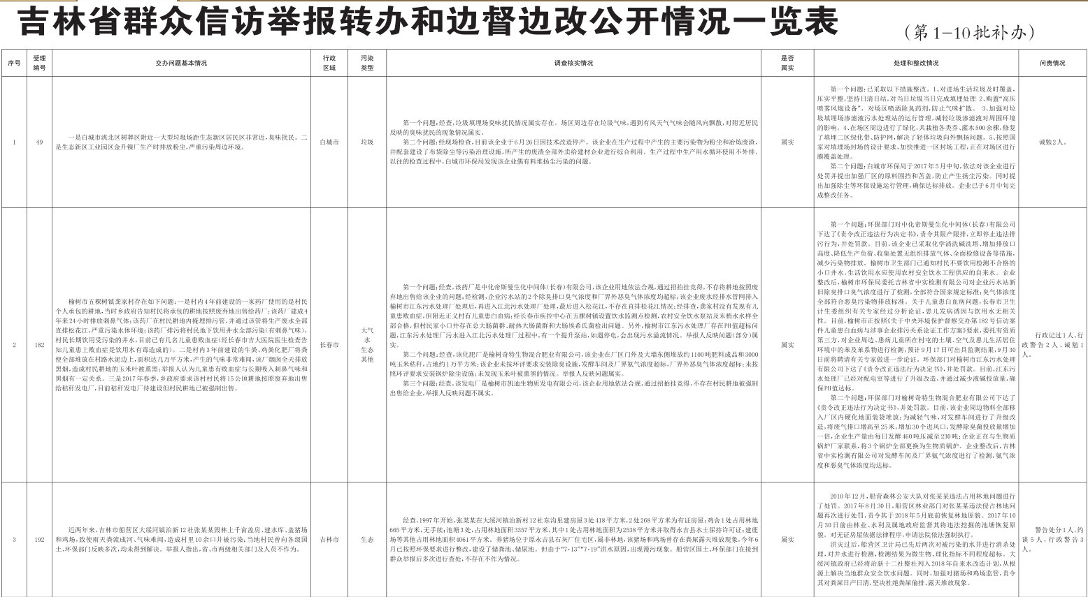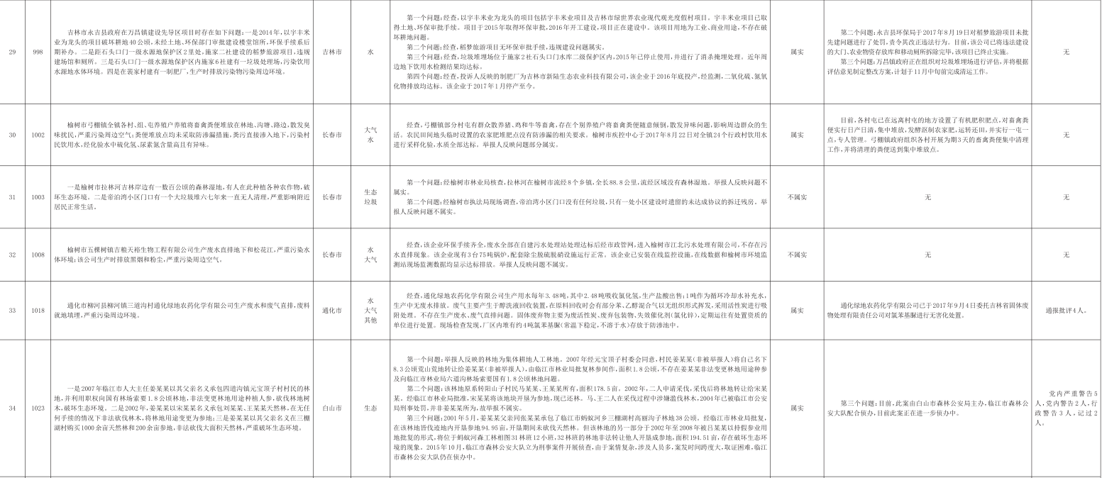吉林省群众信访举报转办和边督边改公开情况一览表