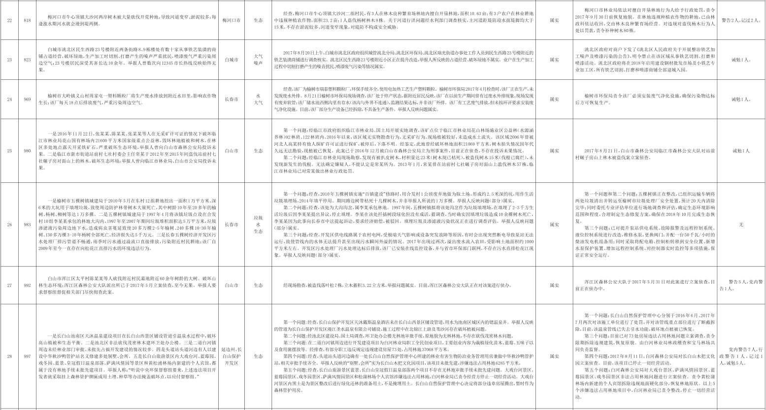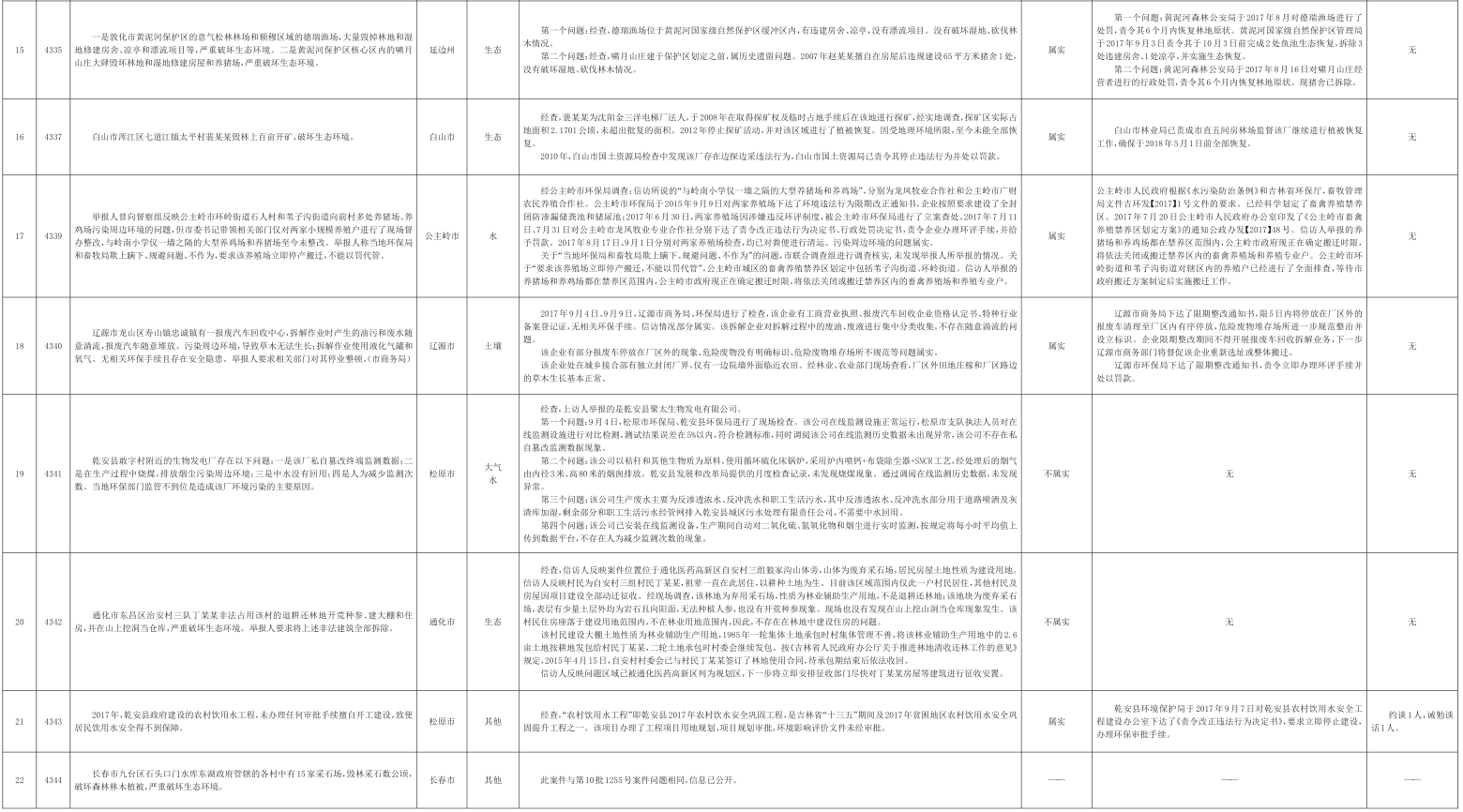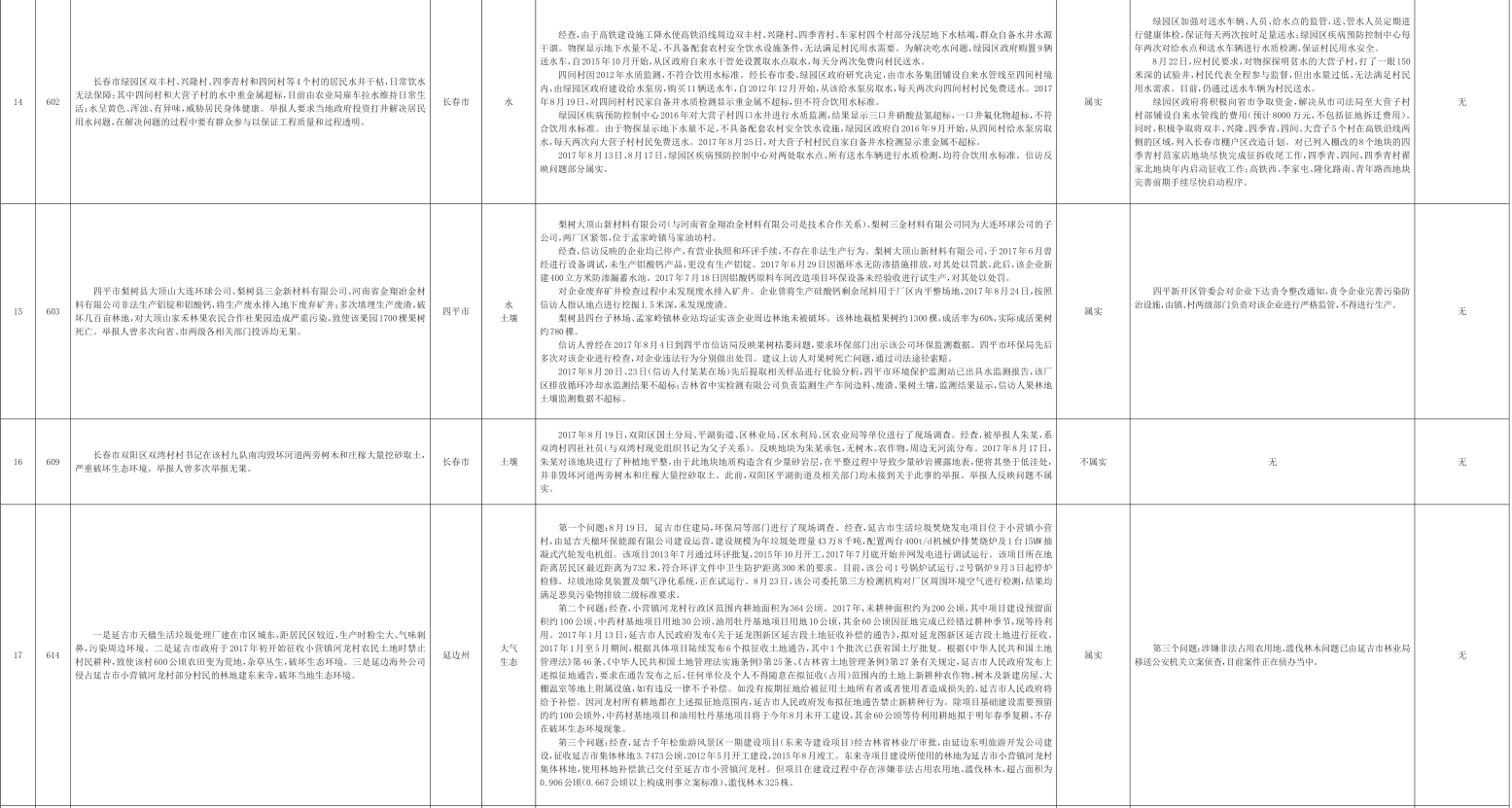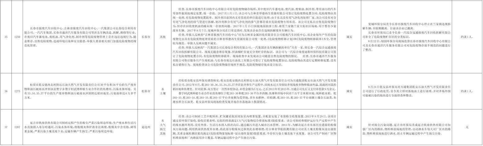 吉林省群众信访举报转办和边督边改公开情况一览表