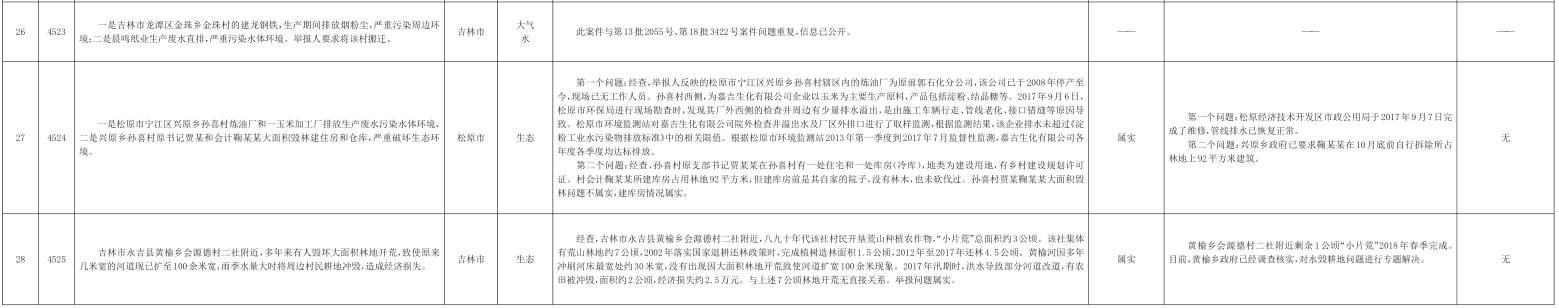 吉林省群众信访举报转办和边督边改公开情况一览表