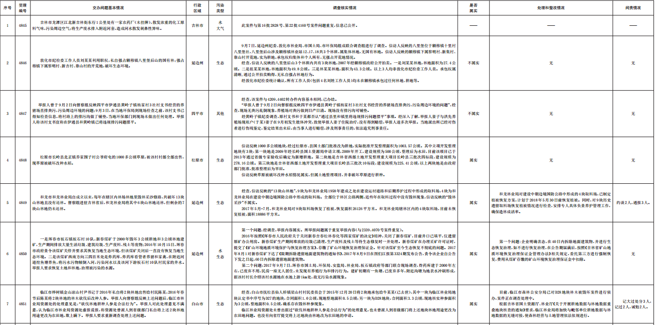 吉林省群众信访举报转办和边督边改公开情况一览表