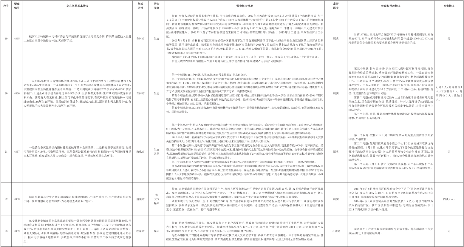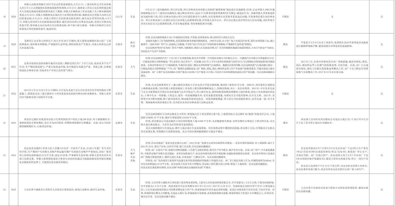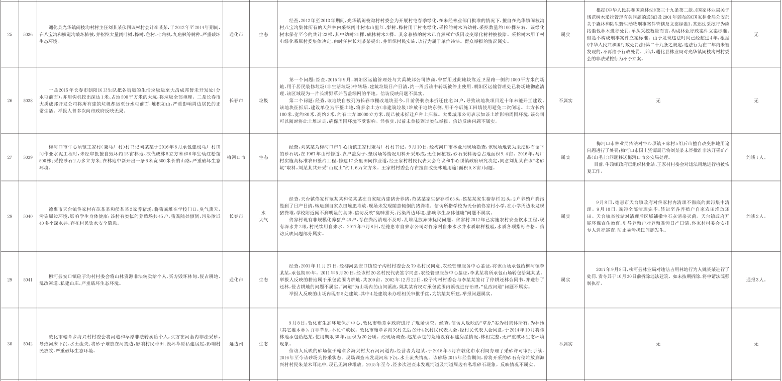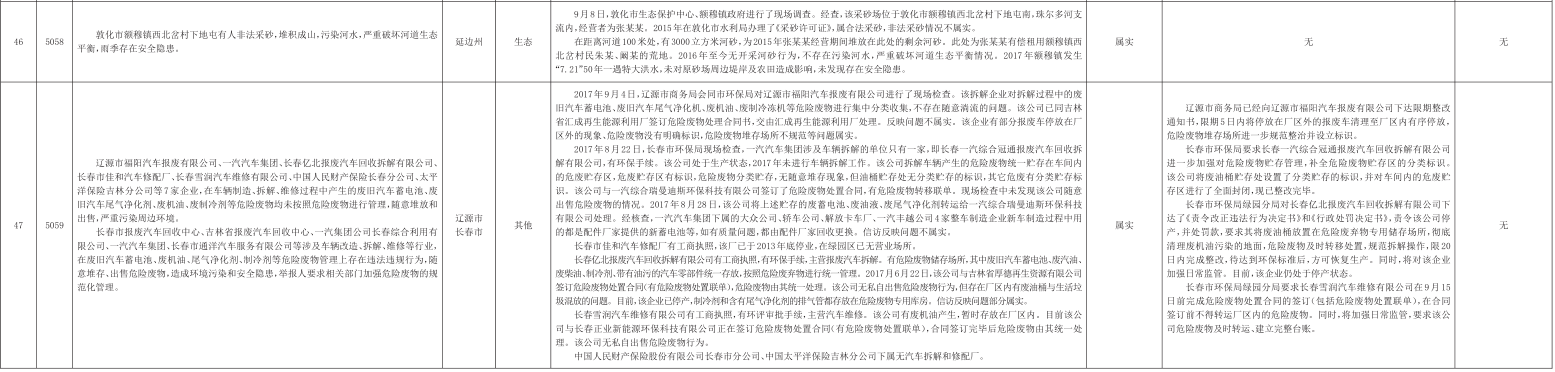 吉林省群众信访举报转办和边督边改公开情况一览表