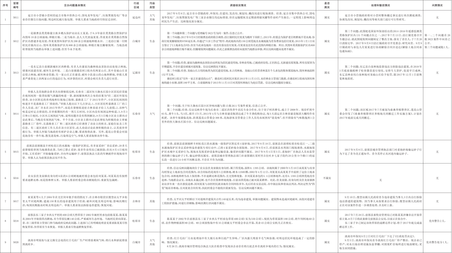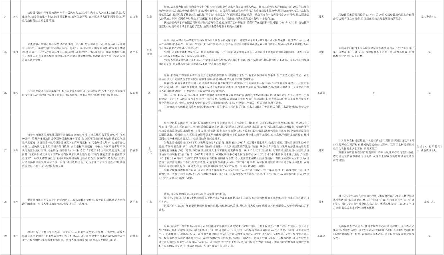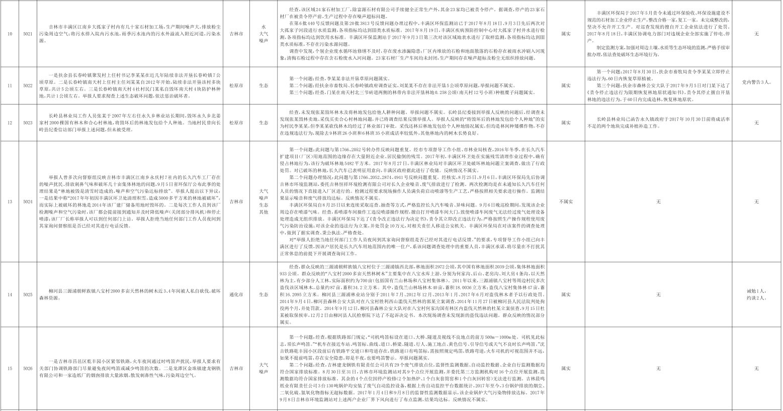 吉林省群众信访举报转办和边督边改公开情况一览表