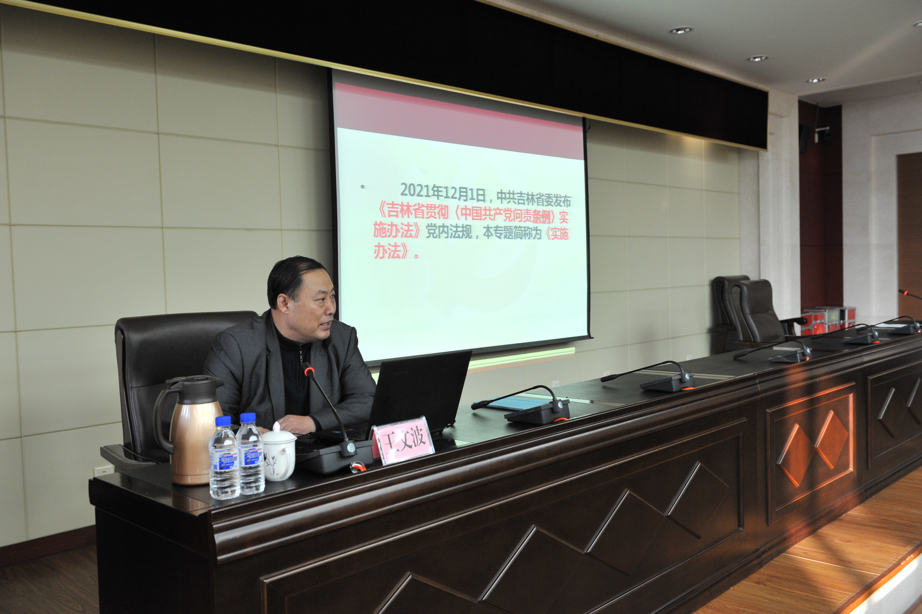 王文波教授紧紧围绕“问责条例实施办法”的重要意义、制定背景、主要内容、贯彻落实四个方面,列举了大量实例,对《吉林省贯彻〈中国共产党问责条例〉实施办法》进行了详细解读。
