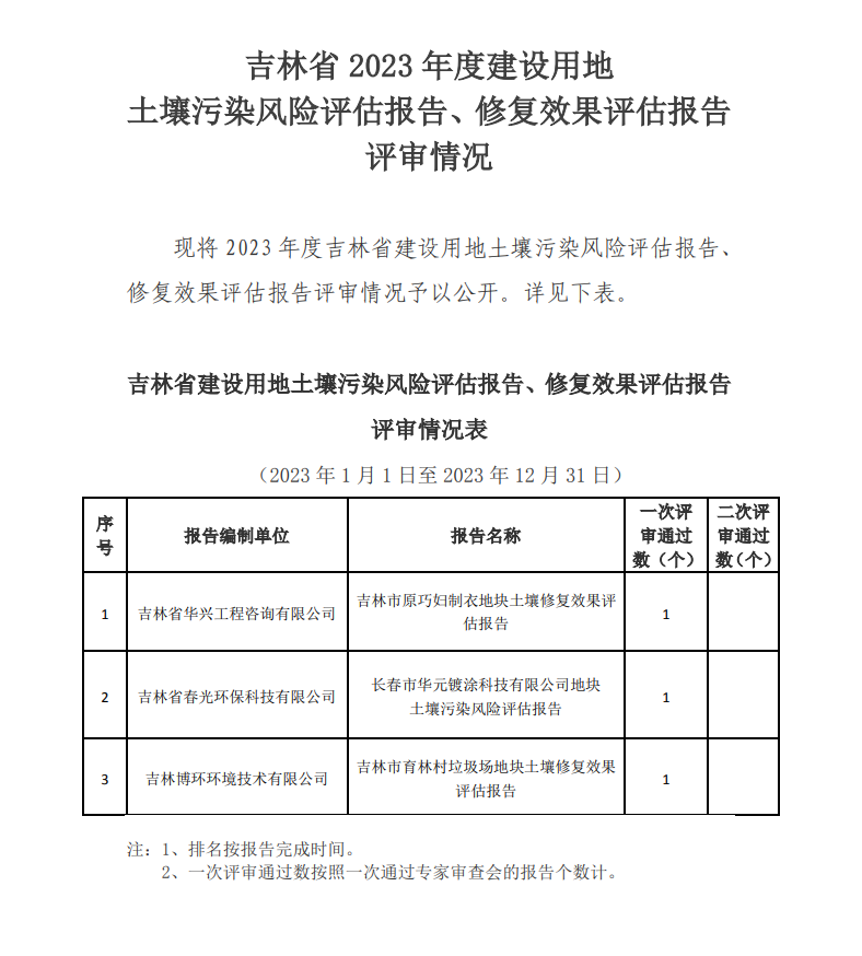 吉林省2023年度建设用地土壤污染风险评估报告、修复效果评估报告评审情况