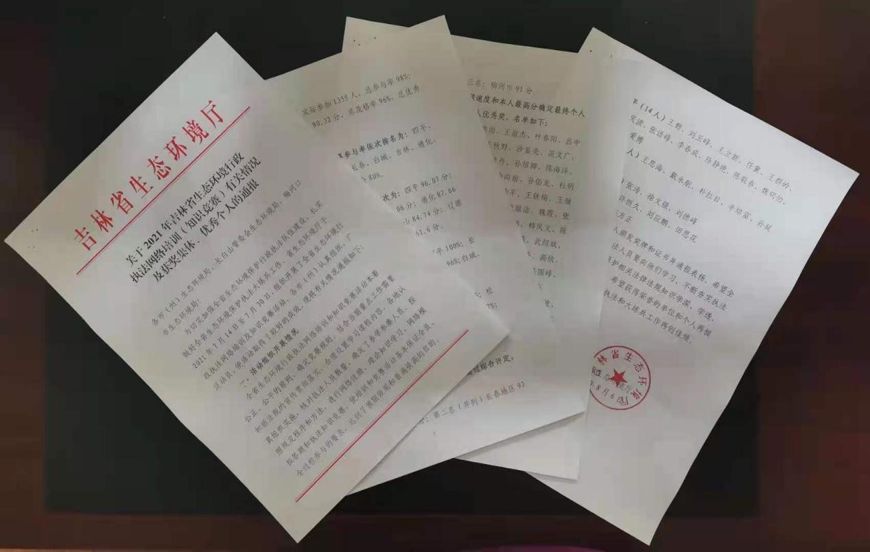 网络培训和竞赛的内容涵盖了《行政处罚法》、《固废法》等生态环境相关的法律法规和吉林省地方性法规、规章标准及规范性文件。培训的竞赛的人员范围涵盖省、市、县三级彩金网 门和执法机构的所有在编在岗执法人员,共计1355人,参与率达99%。省厅对培训和竞赛综合成绩优异的四平市、长春市、松原市、梅河口市及151名执法人员给予通报表扬和表彰。