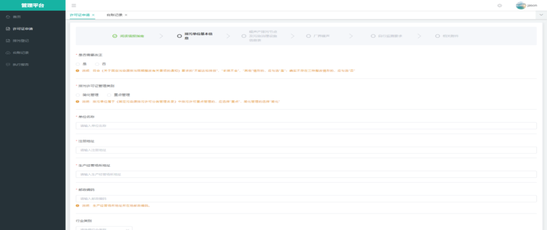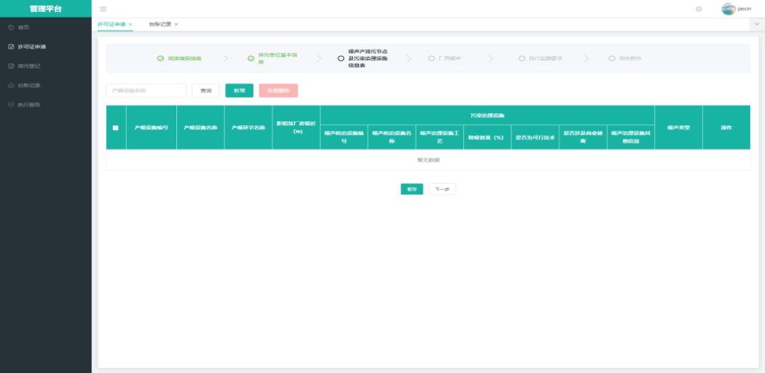 泰州市噪声排污许可管理平台页面示意图