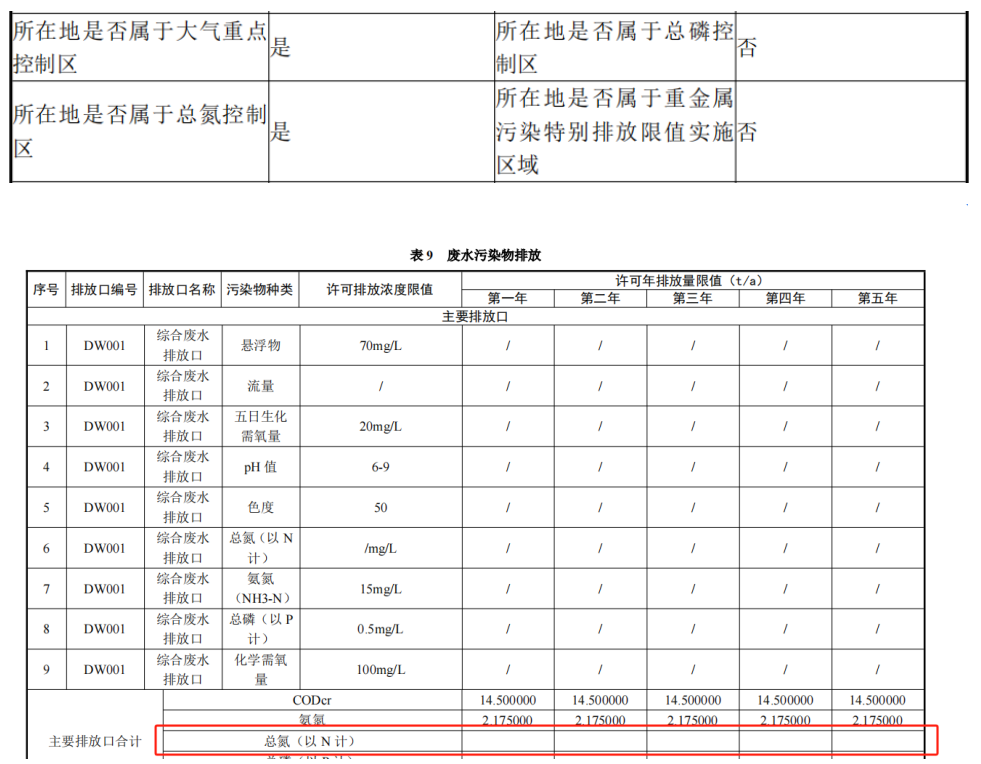 三:总氮总量控制区主要排放口遗漏总氮许可排放量