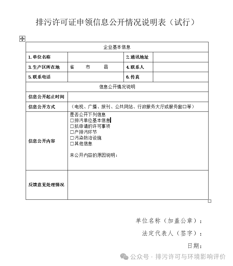 2. 排污许可证申领信息公开情况说明表(重点管理首次申请和重新申请应上传)