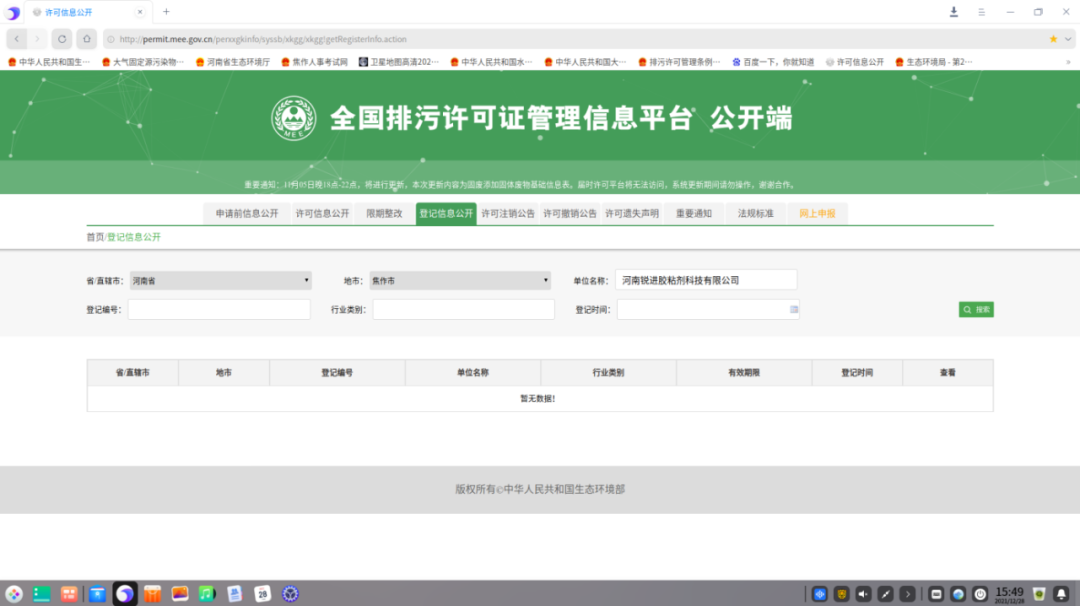 11. 河南焦作市某公司未按规定填报排污许可证管理信息案