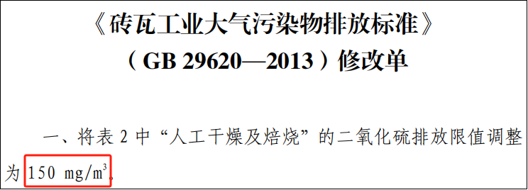 某建材有限公司属于“粘土砖瓦及建筑砌块制造3031”,大气污染物二氧化硫应执行《砖瓦工业大气污染物排放标准》(GB 29620-2013)及其修改单,排放限值应为150mg/m3,但排污许可证中二氧化硫未执行修改单中的浓度限值,错误填写了原标准限值300mg/m3,存在“污染物排放标准及限值错误”问题。