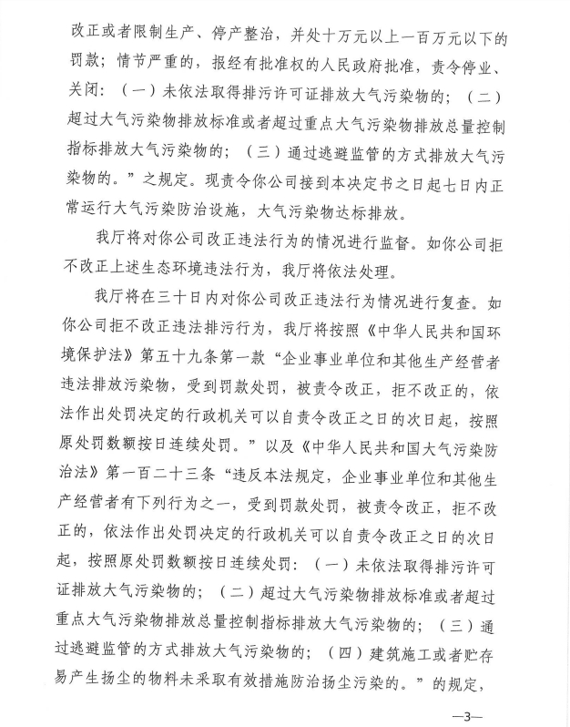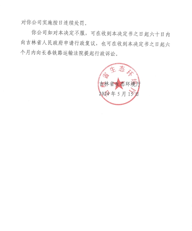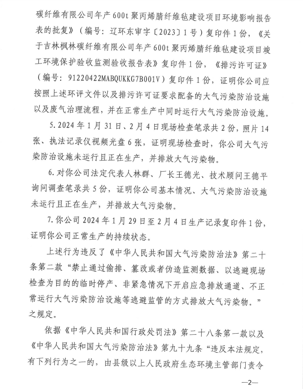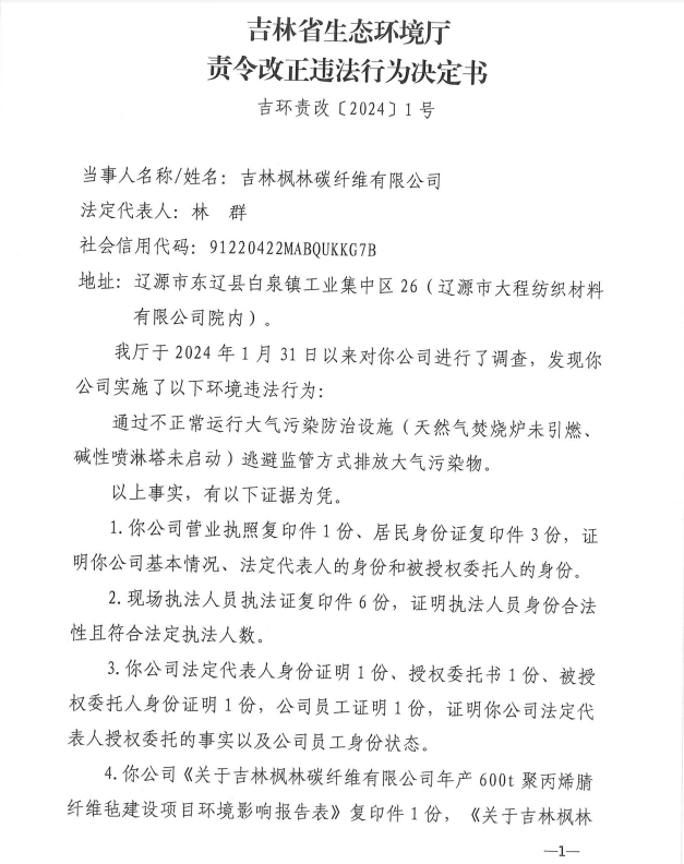 责令改正违法行为决定书(吉林枫林碳纤维有限公司)
