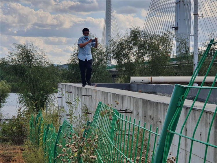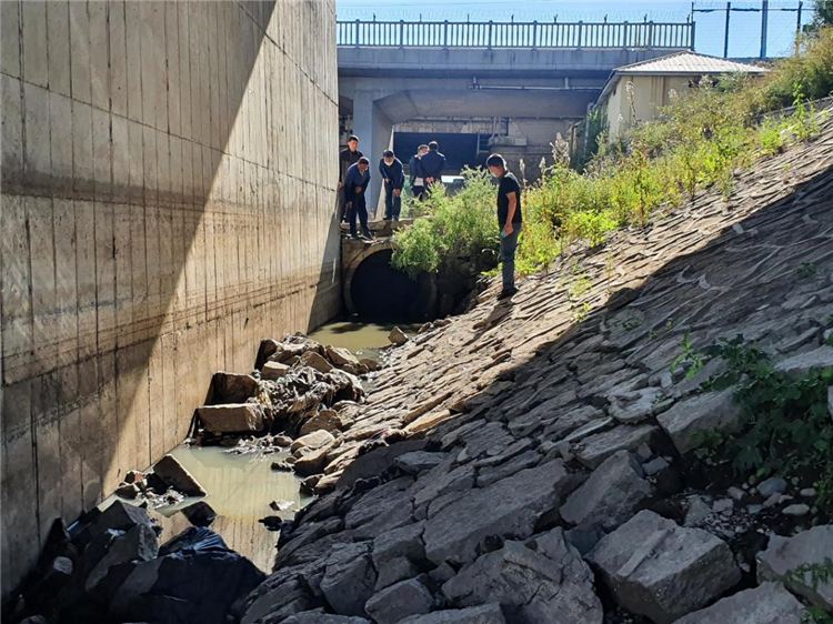 2021年9月,中央第一生态环境保护督察组在吉林省吉林市小沙河现场检查城市污水直排情况。