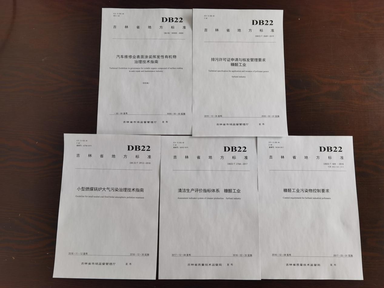 王玉同志在“十三五”期间主持制定吉林省地方标准5项,其中包括糠醛工业环境保护方面的标准3项,标准的颁布与实施,弥补了我国糠醛工业在污染物控制要求方面上的空白、弥补了我国糠醛工业清洁生产评价指标体系的空白。同时,对指导吉林省糠醛工业排污许可证的申请与核发工作提供了有力的技术保障。