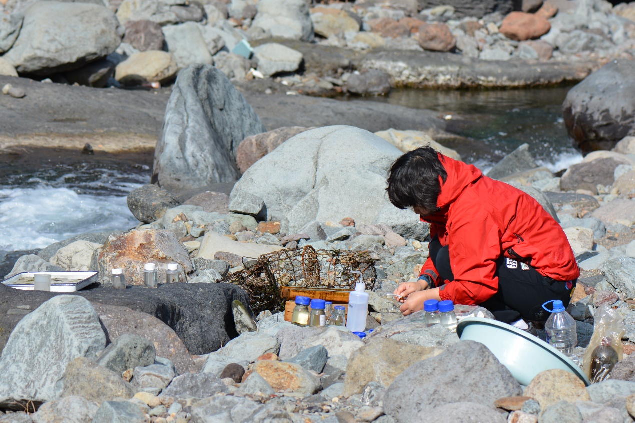 松花江源头区二道白河瀑布下着生藻类采样