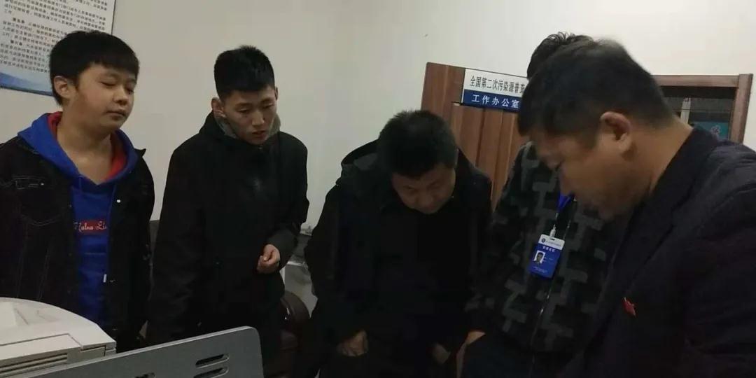 王永太(右二)迎接吉林市普查办检查普查档案工作