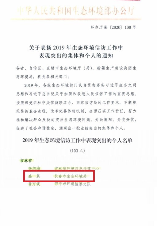 入职以来,他始终坚持“服务为民,奉献环保”的工作理念,以高度的责任意识、饱满的工作热情、务实的工作态度,出色地完成了领导交办的各项工作任务。通过研读法律法规,结合工作实际先后起草了《长春市生态环境信访工作管理规范》、《关于进一步规范生态环境信访档案的通知》等规范性文件,推动了信访工作制度化、规范化、常态化建设。严格贯彻落实上级指示要求,起草上报问题办理情况、工作总结,下发工作方案、工作通知等文件百余份,协助召开市级信访工作专题会议4次,有力、有序、有效推进工作落实落地,深得局领导和同事们的好评。