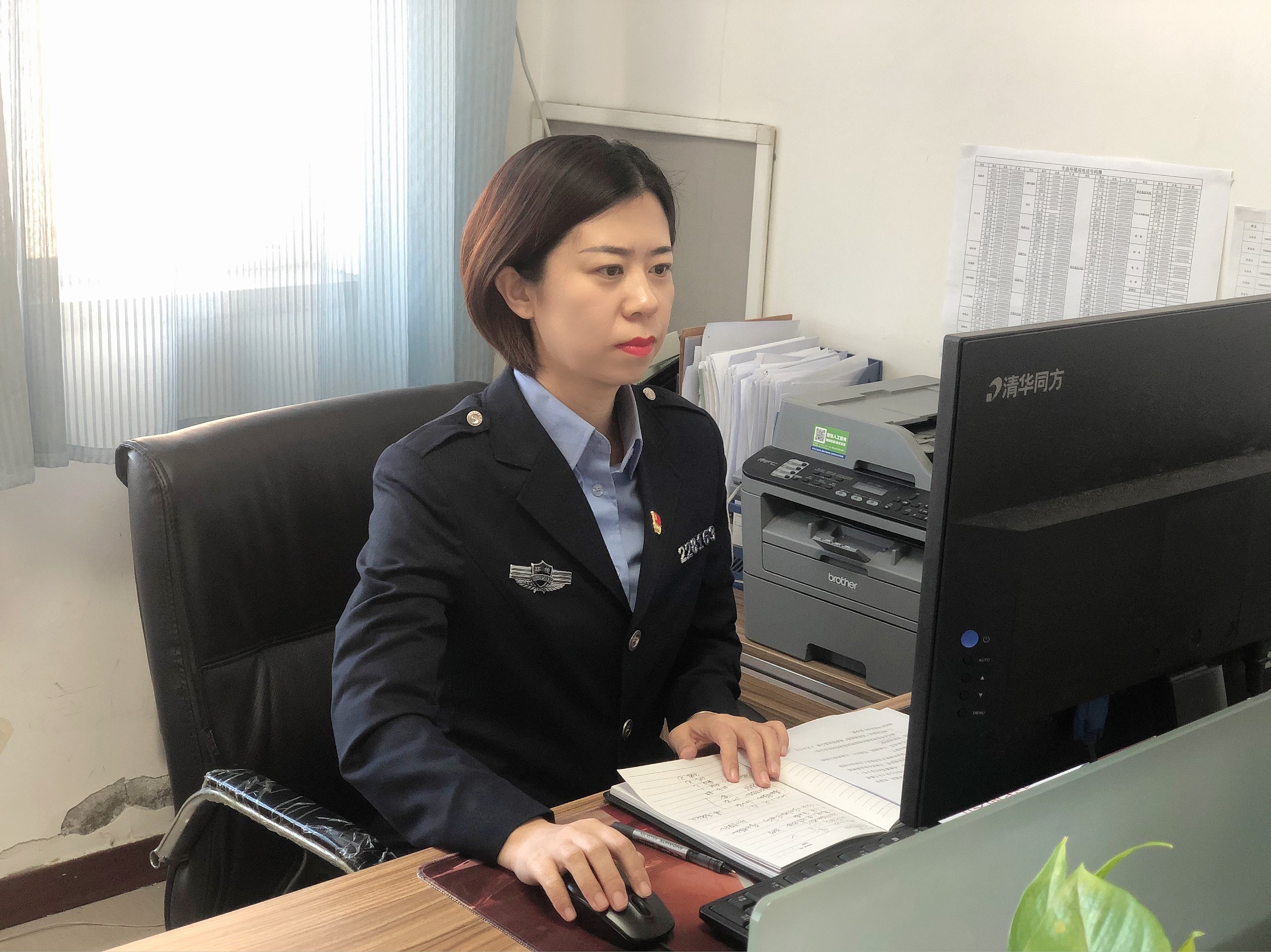 她每月按时调度各县市行政处罚情况,并积极参与省厅执法案卷评审工作,每年对四县(区)进行监管稽查工作,都圆满完成;在2020年环保督查期间,她负责汇总信访案件并上报,在这期间,她加班加点的完成工作任务;在环境监察执法中遇到的新情况、新问题,能积极主动地寻找方法对策,不等不靠,以科学态度剖析问题,以严谨作风处理问题。不仅是业务工作,她还负责本单位的人事和财务工作,面对繁冗纷杂的工作,她沉着应对,不出一点差错。2020年机构整合,她负责机构及人员转隶后的人事工资核定、住房公积金、养老保险、工伤保险、医疗保险等合并划转工作,她都统筹推进,毫无怨言,顺利完成人员划转整合工作。