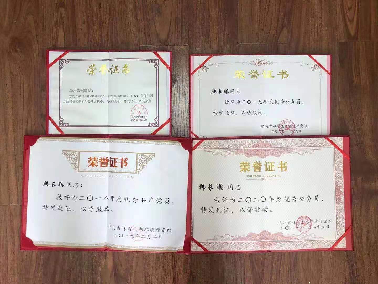2017年起,韩长鹏调任至环境影响与评价处,开始参与生态损害赔偿框架体系制度的建立工作。该工作不仅事涉部门众多,而且沟通内容复杂。他参与制定并印发了《生态损害赔偿磋商管理办法》、《吉林省党政领导干部生态环境损害责任追究实施细则》等多个文件,科学搭建框架,初步建立并完善了我彩金网 损害赔偿制度体系。