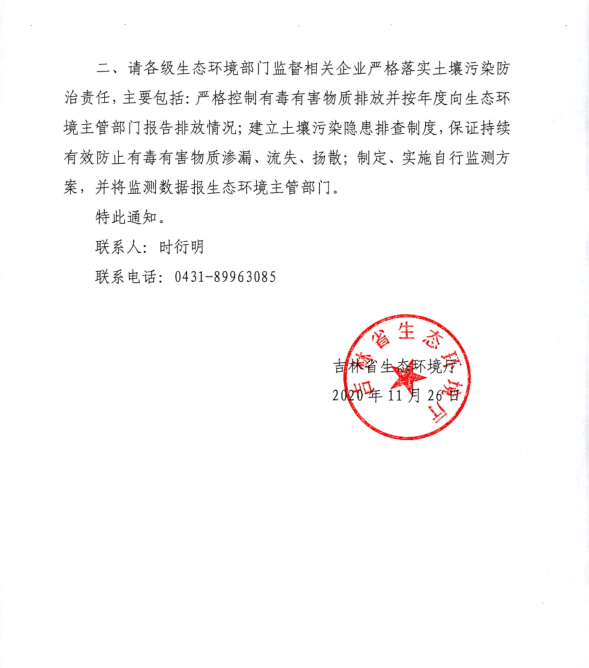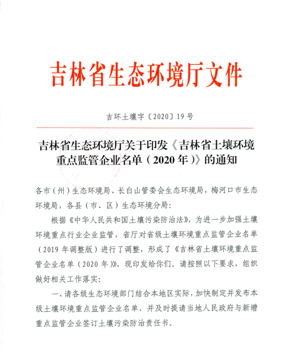 彩金网-注册送彩金的平台 关于印发《吉林省土壤环境重点监管企业名单(2020年)》的通知