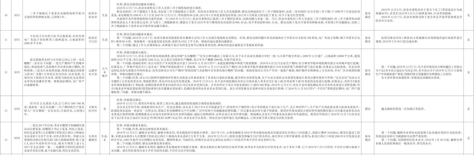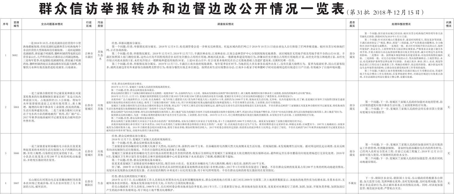 吉林省群众信访举报转办和边督边改公开情况一览表(第31批 2018年12月15日)